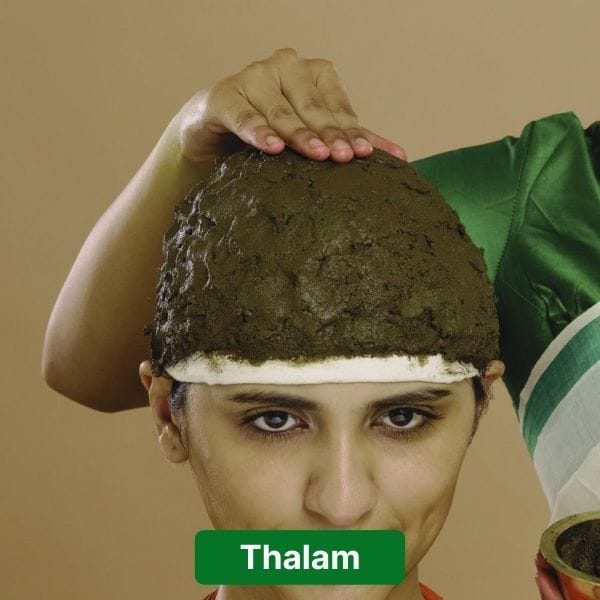 Thalam is an Ayurvedic therapy that involves applying a paste to the scalp made of various herbs and oils. The paste is applied for a set duration of time before being rinsed off. This technique aid in balance the doshas, increase blood flow to the scalp, and promote relaxation.